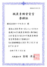 弊社は2025年11月6日、大阪府が推進する『脱炭素経営宣言』事業所として登録されました。